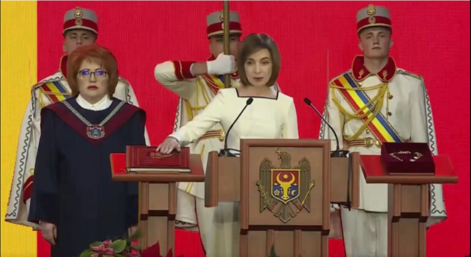 „Jur să-mi dăruiesc toată puterea și priceperea propășirii Republicii Moldova, să respect Constituția și legile țării, să apăr democrația, drepturile și libertățile fundamentale ale omului, suveranitatea, independența, unitatea și integritatea teritorială a Moldovei”, a pronunțat Maia Sandu